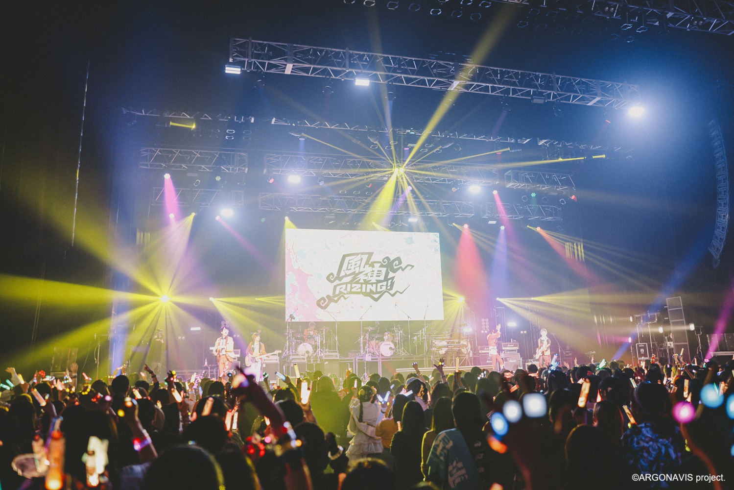 続けて、「NO RICE NO LIFE(Short ver.)」と疾走感あふれる「ランガンラン(Short ver.)」を続けて投下、バンドの幅広い音楽性を見せつける。あっという間に最後の曲になり、神ノ島は「オレたちフウライは未来ば照らす太陽。いつでも皆を笑顔にしてみせるばい!」と言い、またの日のお祭り騒ぎを約束した。