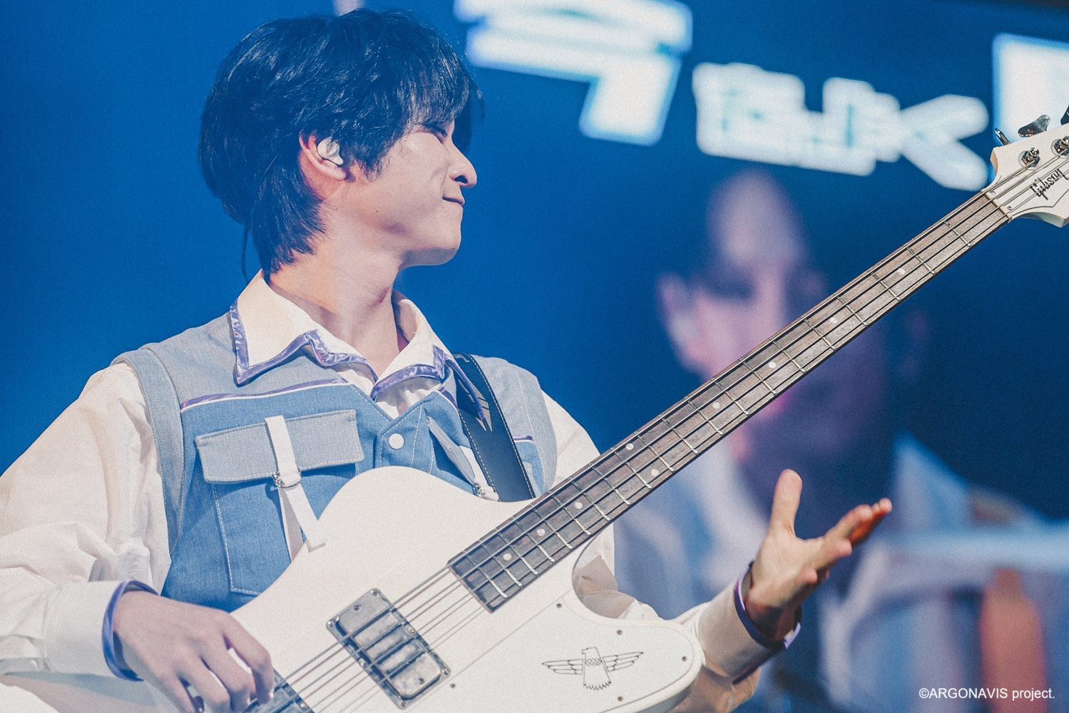 清涼な海風を思わせるBGMをバックに、メンバーたちがステージに現れた。開幕は、ほぼイントロ無しでボーカル・七星 蓮の歌声で始まる「ゴールライン」だ。初期から大切に歌い紡がれてきた本曲は、「ここはゴールじゃない、始まりだ」と聴く人に勇気を与えてくれる。ステージを見ていたら、初めて彼らのパフォーマンスを観た日のことがフラッシュバックした。今は、こんなにも多くの人が彼らの音楽に耳を傾け、歌声を重ねている。その光景はあまりにも感動的で、あらためてArgonavisというバンドの持つ力を感じさせるに十分だった。 彼らの音楽が胸を打つのは、ただ耳障りのいい言葉だけを並べたものではないからだ。